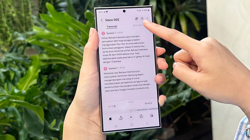 Tidak jarang membuat transkrip rekaman menjadi hal yang menyulitkan dan membutuhkan waktu yang lama karena harus mendengarkan rekaman berulang kali sambil mengetik. Padahal, proses pembuatan transkrip rekaman penting dilakukan ketika kita membutuhkan hasil meeting, mencatat materi dari dosen, mengerjakan skripsi, hingga mewawancarai narasumber untuk membuat artikel. Update terbaru ini bisa menjadi lifehacks untuk bantu kamu mentranskrip rekaman dengan praktis pakai AI di Galaxy S24 Series.