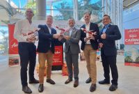 Photo: Kiri ke kanan, Cairns Airport Chief Executive Officer Richard Barker, Menteri Pariwisata Michael Healy, Perwakilan Indonesia AirAsia Eddy Soemawilaga, Head of Indonesia Affairs…