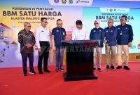 Wakil Menteri ESDM Yuliot melakukan penandatanganan prasasti didampingi Direktur Utama Pertamina Patra Niaga Riva Siahaan, Kepala BPH Migas Erika Retnowati, Pejabat Sekretaris Daerah Provinsi…