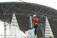 Petugas lapangan TelkomGroup menyiapkan infrastruktur telekomunikasi di salah satu lokasi pertandingan Pekan Olahraga Nasional (PON) XXI Aceh-Sumut 2024 di Banda Aceh pada beberapa waktu…
