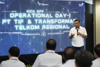 Direktur Utama Telkom Ririek Adriansyah dalam acara Kick Off Operational Day 1 PT Telkom Infrastruktur Indonesia (TIF) di Jakarta, Kamis (1/8). Jakarta, 1 Agustus 2024…