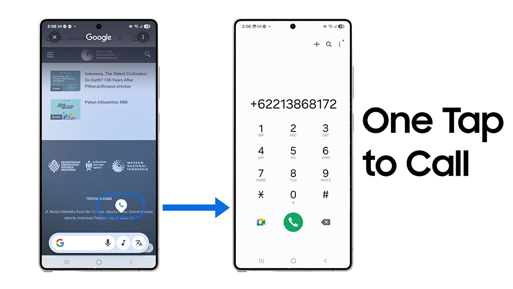 One Tap Actions dapat memudahkan kamu mengakses nomor telepon, email, dan alamat yang ada di layer smartphone kamu