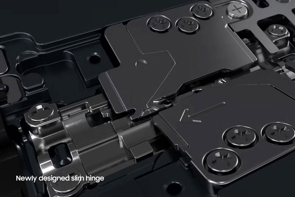 Dirancang lebih ringan 21% daripada model sebelumnya, engsel baru Galaxy Z Fold4 memiliki dimensi yang lebih lebar dan lebih pendek dari Cover Screen. Berbeda dengan perangkat lipat sebelumnya yang menggunakan gir yang saling mengunci untuk memastikan layar terbuka dan terlipat secara merata, Galaxy Z Fold4 mengubah gerakan engsel dari berputar menjadi linier. Perubahan ini secara signifikan mengurangi bobot, ketebalan, dan jumlah komponen, serta mempermudah proses manufaktur dan meningkatkan kekuatan perangkat. Dengan Galaxy Z Fold4, Samsung membangun engsel teringan dan teringkas pada saat itu, sambil tetap mempertahankan tingkat kekuatan dan ketahanan yang sama dengan model sebelumnya.