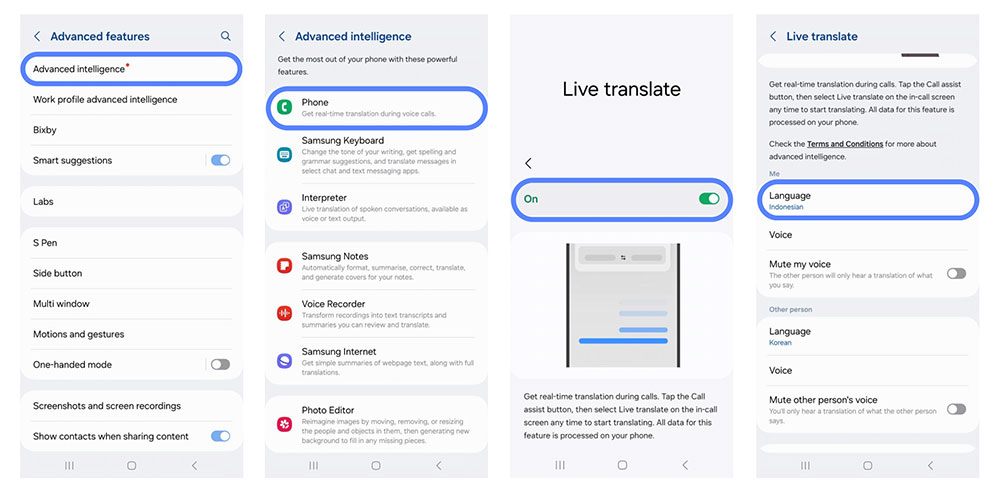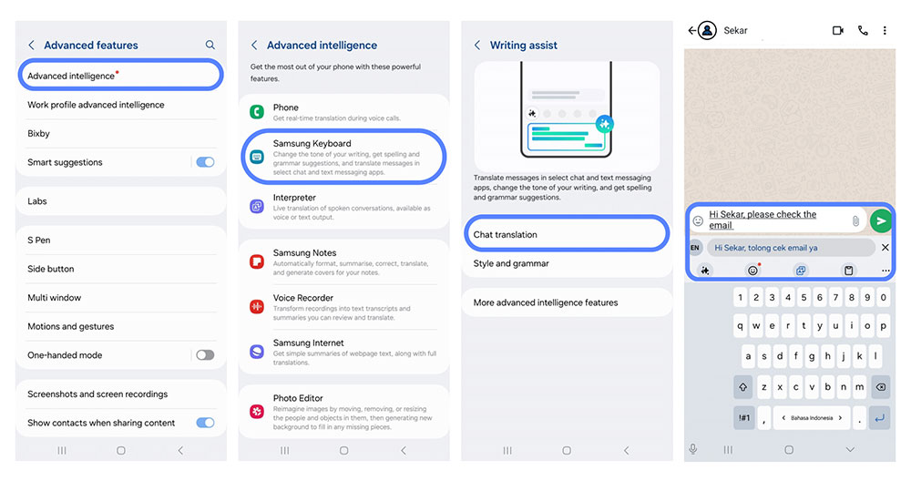 Pengguna Galaxy S24 Series bisa mengaktifkan Bahasa Indonesia di Galaxy AI dengan 3 langkah berikut ini: