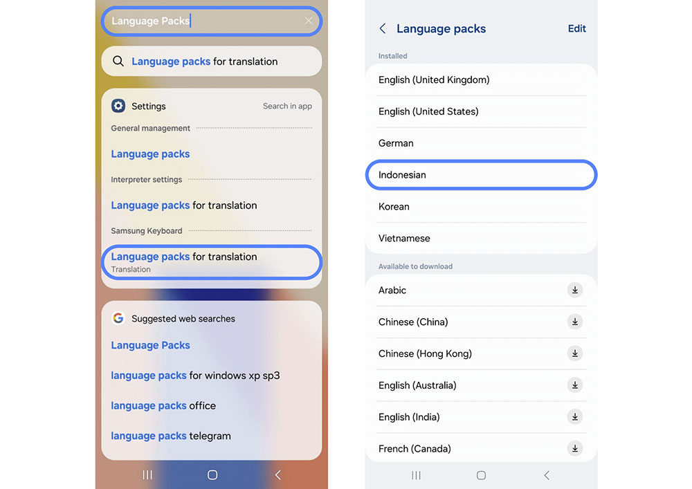 4. Unduh Bahasa Indonesia. Lalu untuk mengaktifkannya, pilih Bahasa Indonesia