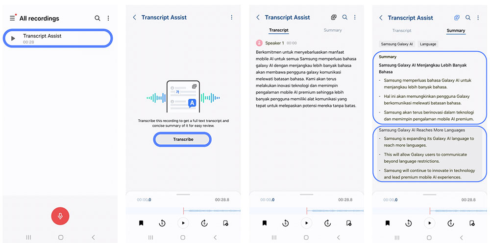 Fitur Transcript kini dapat mentranskrip rekaman meeting atau interview dari bahasa Indonesia, bahkan langsung meringkas dan menerjemahkannya ke bahasa asing, atau sebaliknya