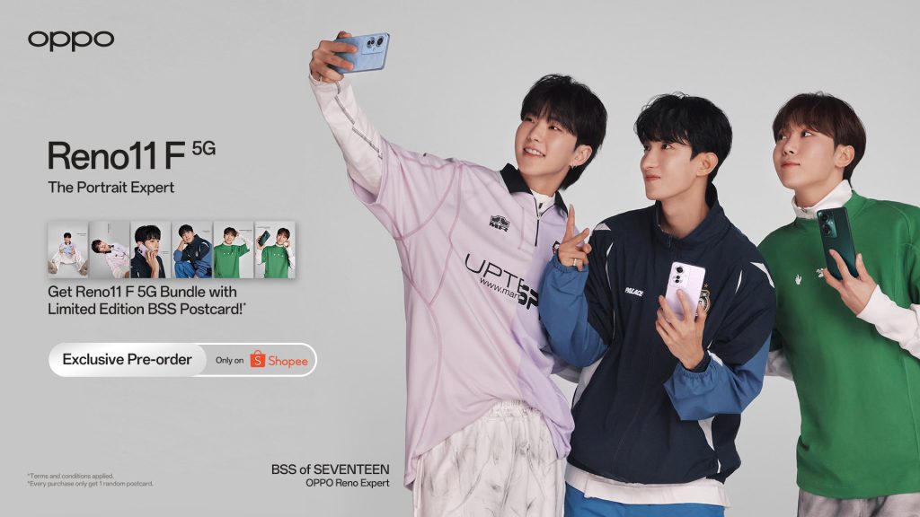“Untuk menjangkau anak muda sekaligus penggemar K-pop yang semakin menjamur di Indonesia, OPPO berkolaborasi bersama anggota BSS (SEVENTEEN) yaitu SEUNGKWAN, DK, dan HOSHI sebagai anggota OPPO Reno Expert untuk pasar Asia Pasifik. Konsumen dapat mengikuti kompetisi #LikeEverySnap dengan memanfaatkan fitur Smart Image Matting berbasis AI pada OPPO Reno11 F 5G untuk membuat foto kreatif dengan proses editing yang mudah. Peserta dengan konten paling kreatif berkesempatan untuk memenangkan Limited Postcard Eksklusif BSS”, ujar Patrick Owen, Chief Marketing Officer OPPO Indonesia.