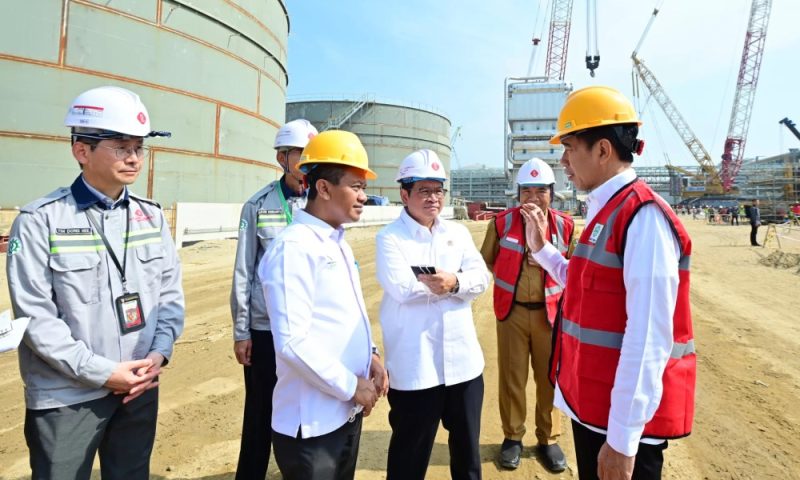 Dalam peninjauan tersebut, Presiden Jokowi melihat sejumlah area pembangunan, seperti area produksi, tangki penampungan produk akhir, hingga fasilitas pendukung seperti dermaga.