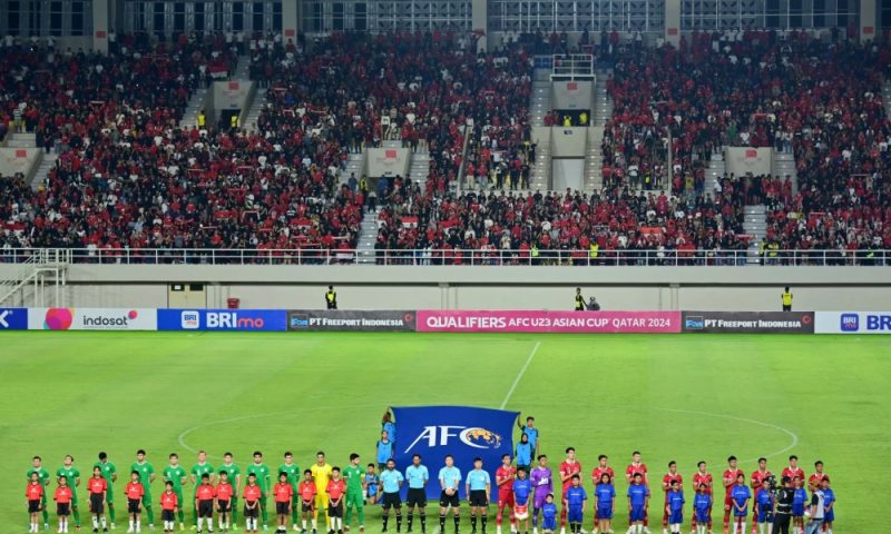 Pertandingan Grup K Kualifikasi Piala Asia U-23, di Stadion Manahan Solo, Jawa Tengah, Selasa (12/9/2023). Tim nasional sepak bola U23 Indonesia berhasil lolos ke putaran final Piala Asia U23 di Qatar 2024 usai menekuk Turkmenistan 2-0 dalam pertandingan yang digelar di Stadion Manahan, Kota Surakarta, Jawa Tengah, Selasa (12/09/2023) malam. Presiden RI Joko Widodo (Jokowi) beserta Ibu Iriana turut menyaksikan momen bersejarah tersebut karena untuk pertama kalinya Indonesia akan berlaga pada kejuaraan tersebut.