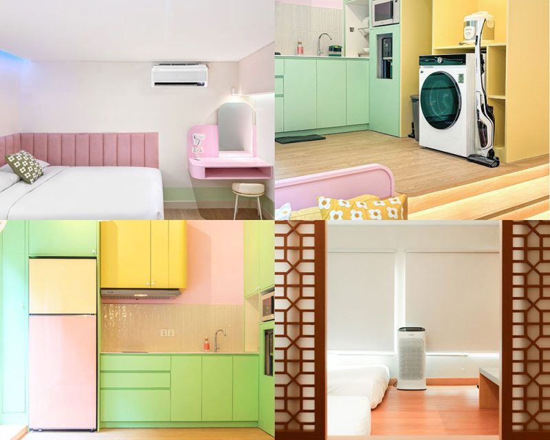 Kalau kamu ingin menghabiskan waktu sendirian, ruangan yang lebih compact bertemakan kota Seoul, Busan, Nami, Jeju, Myeongdong, serta Hongdae cocok untuk kamu pilih. Dengan luas mulai dari 55m2 kamu sudah bisa bermalam di kamar estetik sambil menggunakan beberapa produk home appliances pintar yang disediakan.