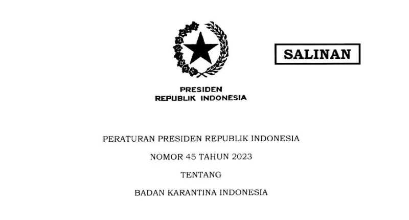 Disebutkan dalam Perpres yang dapat diakses di laman JDIH Sekretariat Kabinet ini, Badan Karantina Indonesia adalah lembaga pemerintah yang menyelenggarakan tugas pemerintahan di bidang karantina hewan, ikan, dan tumbuhan. Pembentukan badan ini merupakan amanat dari Pasal 336 Peraturan Pemerintah (PP) Nomor 29 Tahun 2023 tentang Peraturan Pelaksanaan Undang-Undang Nomor 21 Tahun 2019 tentang Karantina Hewan, Ikan, dan Tumbuhan.