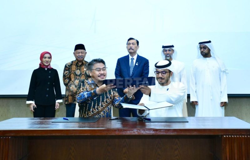 Penandatanganan tersebut dilakukan oleh CEO Pertamina New & Renewable Energy (Pertamina NRE) John Anis dan Direktur Pengembangan dan Investasi Masdar Abdulla Zayed, serta disaksikan oleh Menteri Koordinator Kemaritiman dan Investasi RI Luhut Binsar Panjaitan, Menteri Energi dan Infrastruktur Persatuan Emirat Arab (PEA) Suhail Mohammed Faraj Al Mazroui, Direktur Jenderal Energi Baru, Terbarukan, dan Konservasi Energi Kementerian ESDM RI Eniya Listiani Dewi, Duta Besar PEA untuk Indonesia Abdulla Salem Al Dhaheri, Duta Besar Indonesia untuk PEA Husin Bagis, serta Direktur Utama Pertamina Nicke Widyawati.