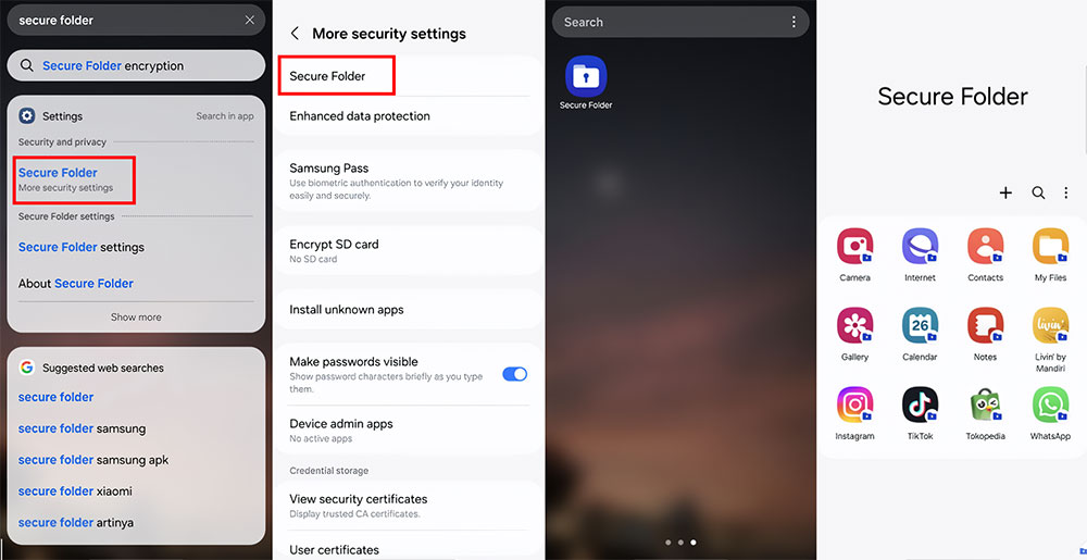 - Cari melalui Homescreen kamu “Secure Folder” dan pilih opsi “Secure Folder” untuk diarahkan langsung ke Pengaturan.