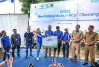 Komitmen Bakti BCA Beri Dampak Positif Kepada Petani Kopi – EVP Corporate Communication and Social Responsibility BCA Hera F. Haryn (keempat kiri) saat memberikan bantuan…