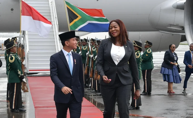 Wakil Presiden Republik Indonesia Gibran Rakabuming tiba di Bandar Udara Internasional O.R. Tambo, Johannesburg, Afrika Selatan, Jumat (21/11/2025). Kedatangan Wapres bersama rombongan sekitar pukul 15.15 WS setelah menempuh penerbangan selama 10 jam 50 menit dari Jakarta. Setibanya di apron VIP, Wapres disambut hangat dengan tarian tradisional Afrika Selatan “Tari Pantsula”. Pantsula adalah tarian jalanan energik