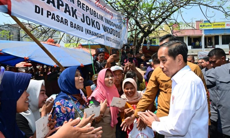 Presiden RI Joko Widodo (Jokowi) meninjau aktivitas perdagangan yang berlangsung di Pasar Kranggot, Kota Cilegon, Provinsi Banten, pada Selasa (12/09/2023). Dalam keterangannya usai peninjauan, Presiden mengatakan bahwa harga bahan pangan di sana sangat baik.